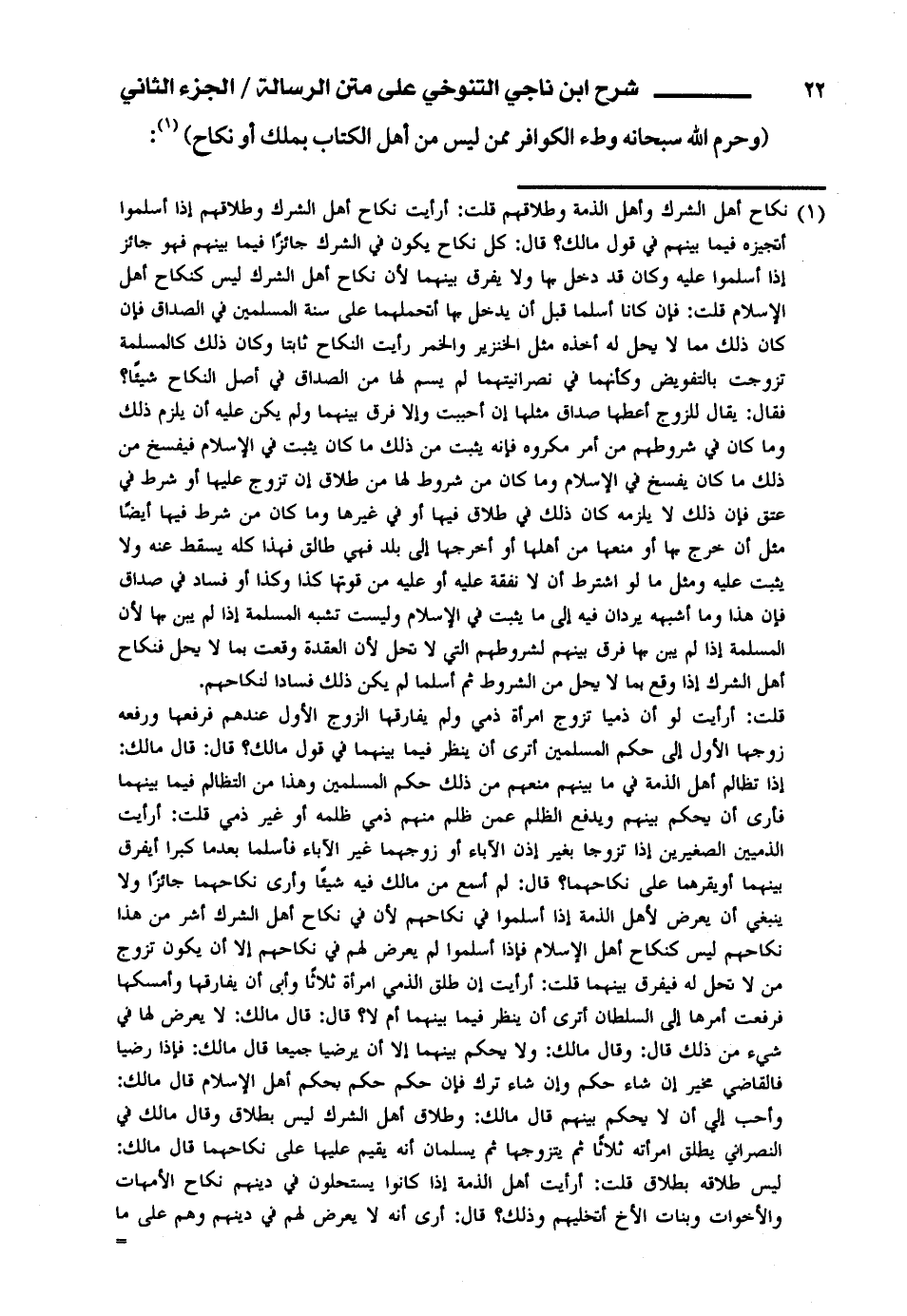كتاب شرح ابن ناجي التنوخي على متن الرسالة (اسم الجزء: 2)