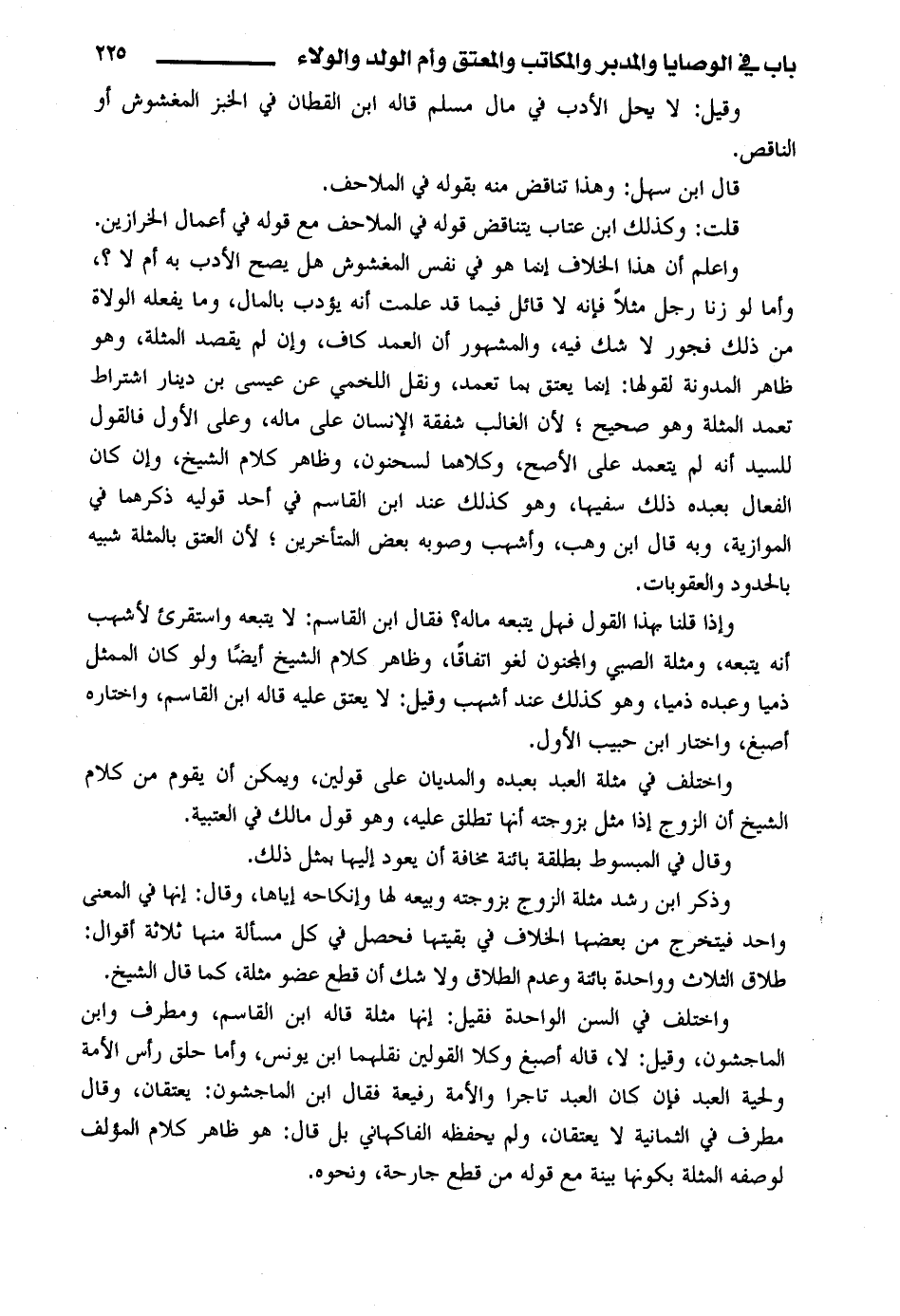 قلت: وكذلك ابن عتاب يتناقض قوله في الملاحف مع قوله في أعمال الخرازين.