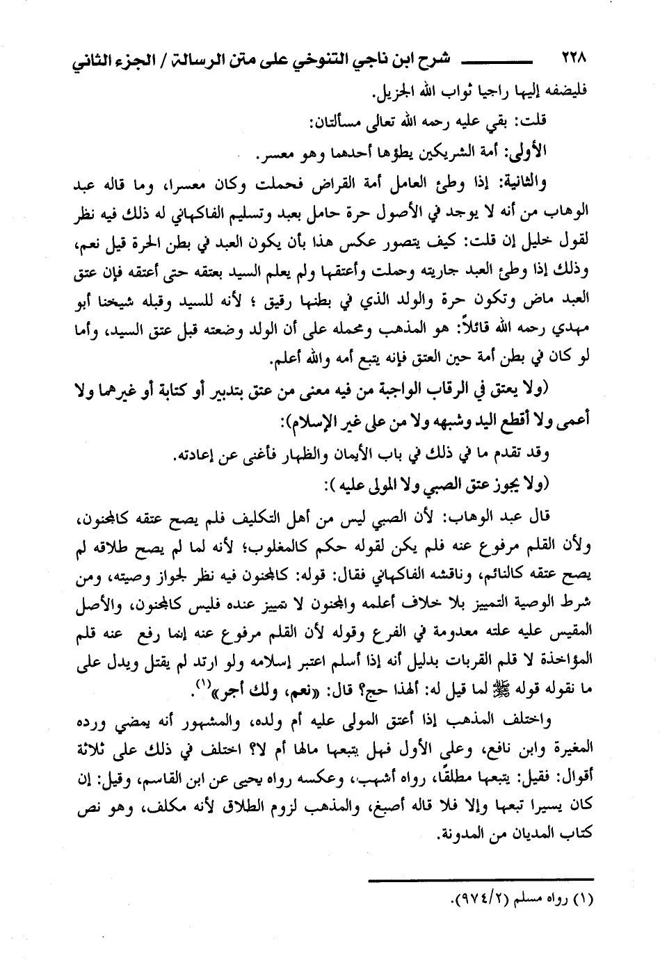 كتاب شرح ابن ناجي التنوخي على متن الرسالة (اسم الجزء: 2)