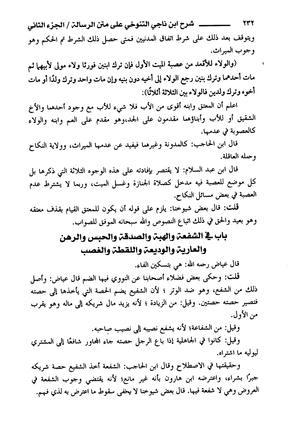 كتاب شرح ابن ناجي التنوخي على متن الرسالة (اسم الجزء: 2)