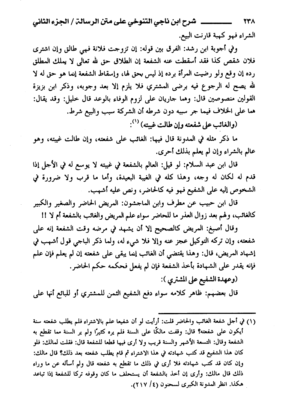 كتاب شرح ابن ناجي التنوخي على متن الرسالة (اسم الجزء: 2)