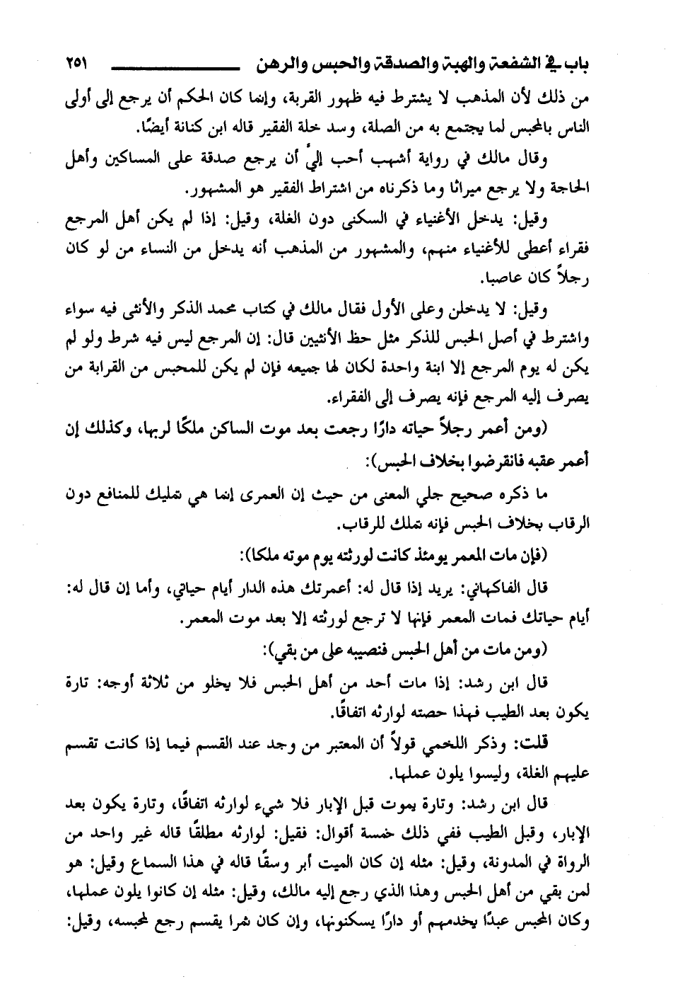 وقال مالك في رواية أشهب أحب إلي أن يرجع صدقة على المساكين وأهل الحاجة ولا يرجع ميراثا وما ذكرناه من اشتراط الفقير هو المشهور.