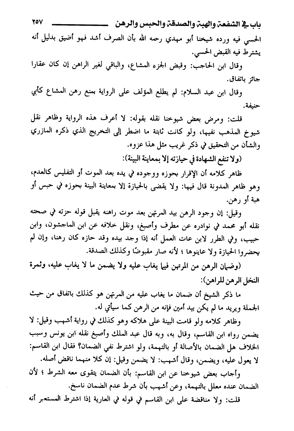 وقال ابن عبد السلام: لم يطلع المؤلف على الرواية بمنع رهن المشاع كأبي حنيفة.