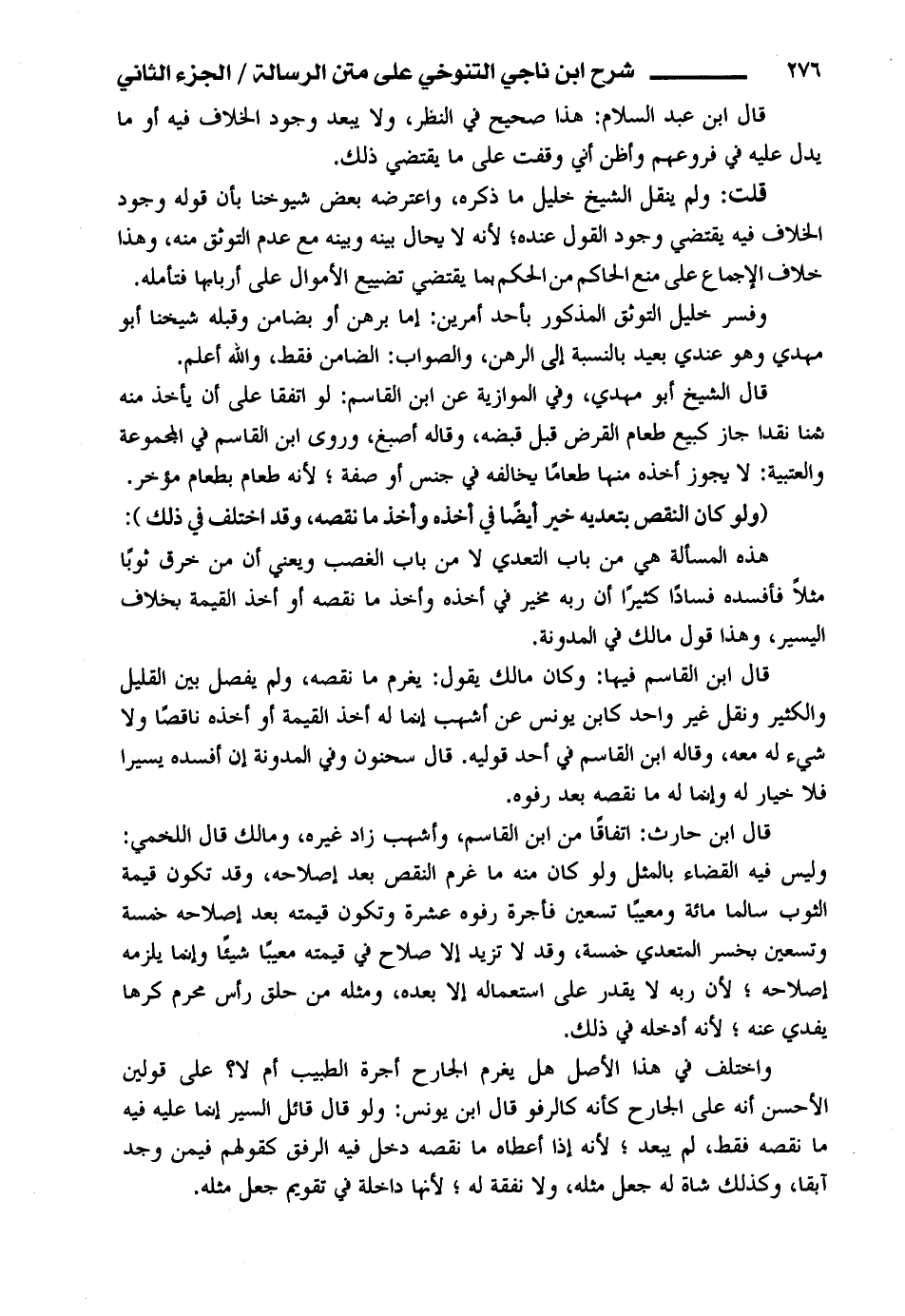 كتاب شرح ابن ناجي التنوخي على متن الرسالة (اسم الجزء: 2)
