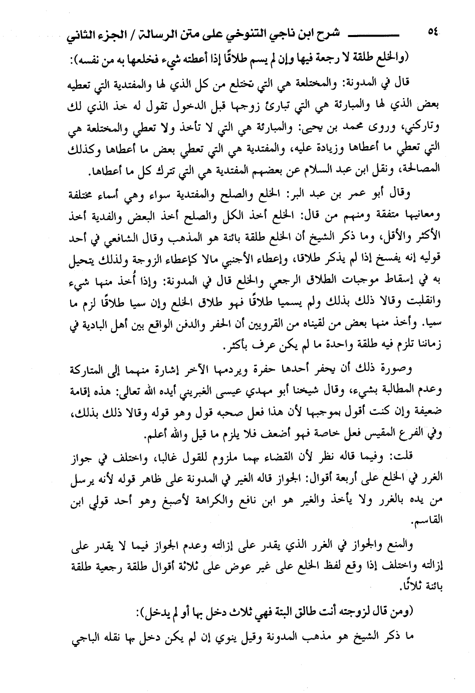 كتاب شرح ابن ناجي التنوخي على متن الرسالة (اسم الجزء: 2)