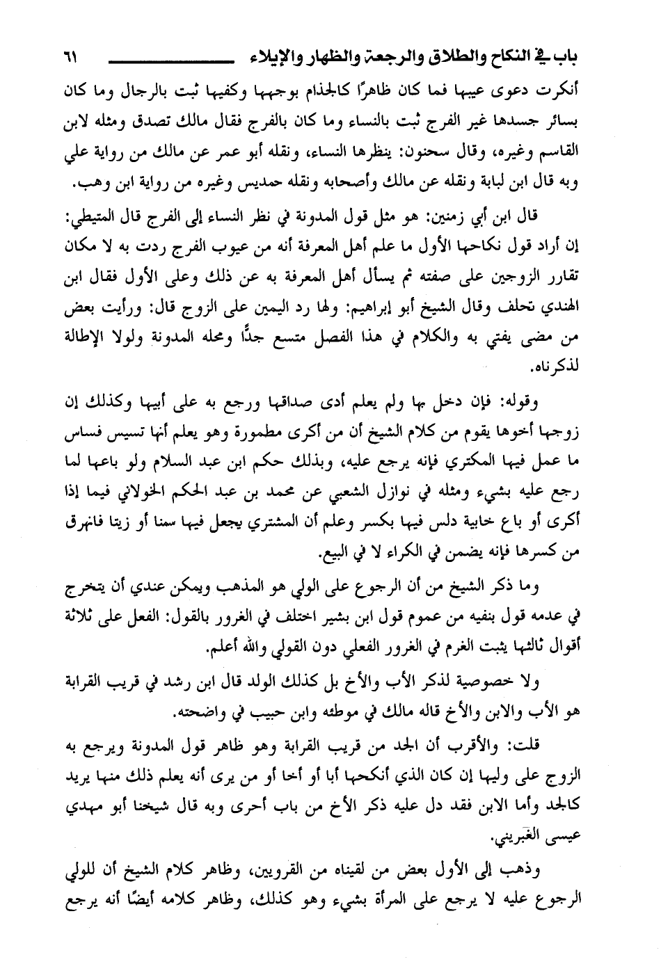 قلت: والأقرب أن الجد من قريب القرابة وهو ظاهر قول المدونة ويرجع به الزوج على وليها إن كان الذي أنكحها أبا أو أخا أو من يرى أنه يعلم ذلك منها يريد كالجد وأما الابن فقد دل عليه ذكر الأخ من باب أحرى وبه قال شيخنا أبو مهدي عيسى الغبريني.