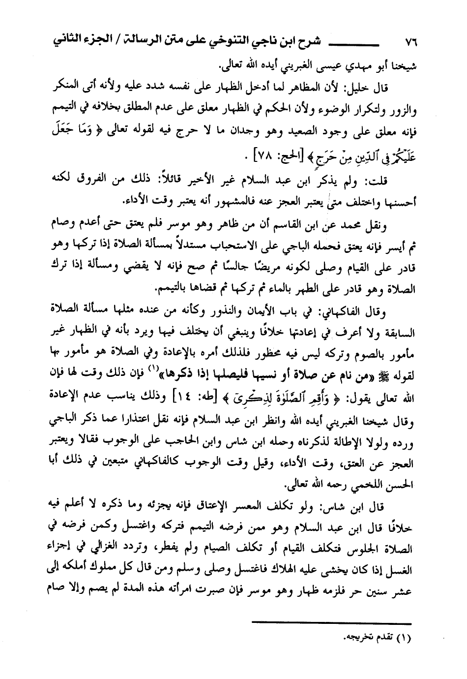 كتاب شرح ابن ناجي التنوخي على متن الرسالة (اسم الجزء: 2)