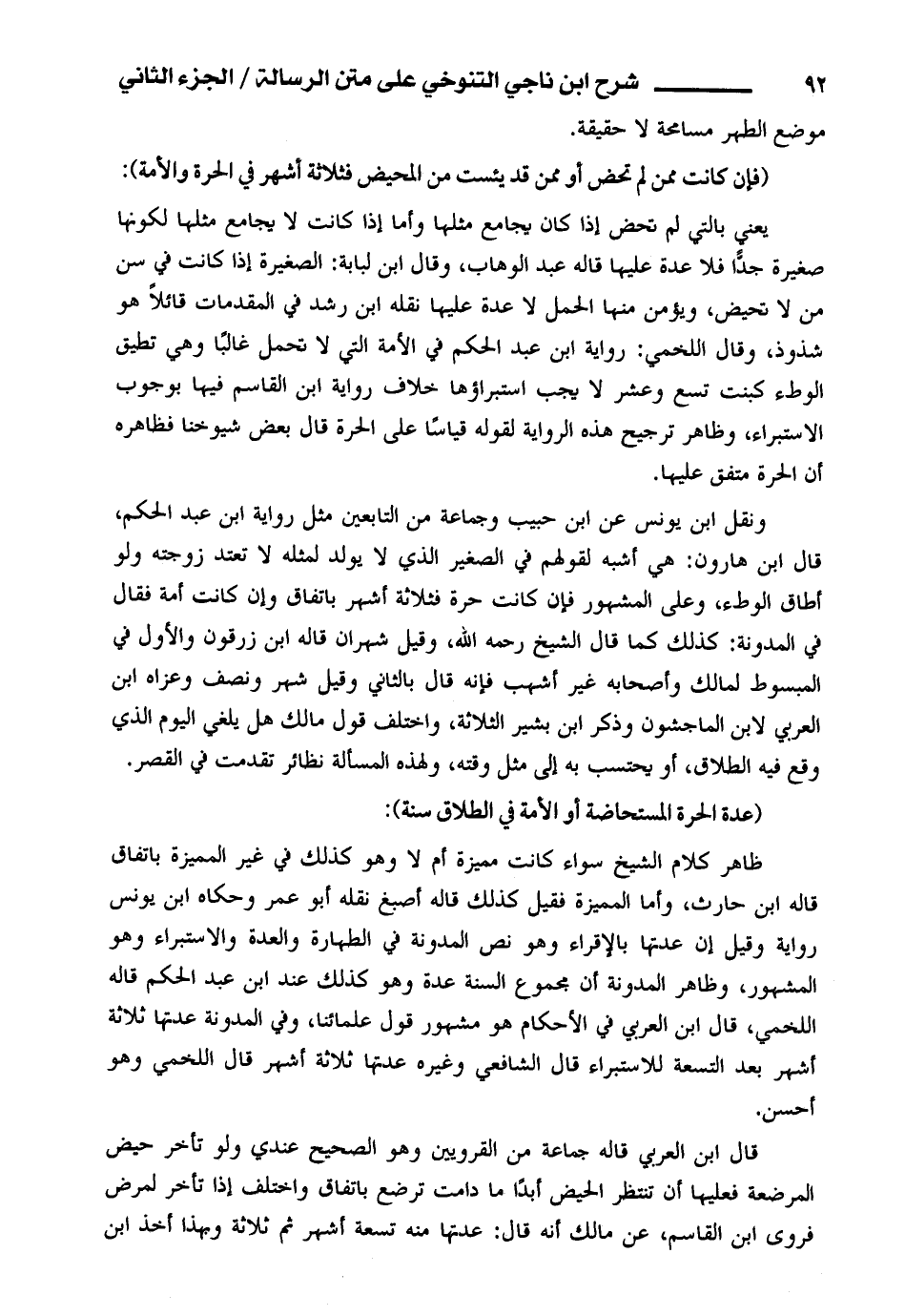 كتاب شرح ابن ناجي التنوخي على متن الرسالة (اسم الجزء: 2)