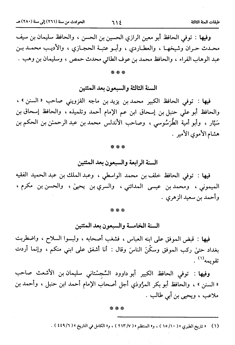 (1) «تاريخ الطبري» (10/ 15)، و «المنتظم» (7/ 213)، و «الكامل في التاريخ» (6/ 449).