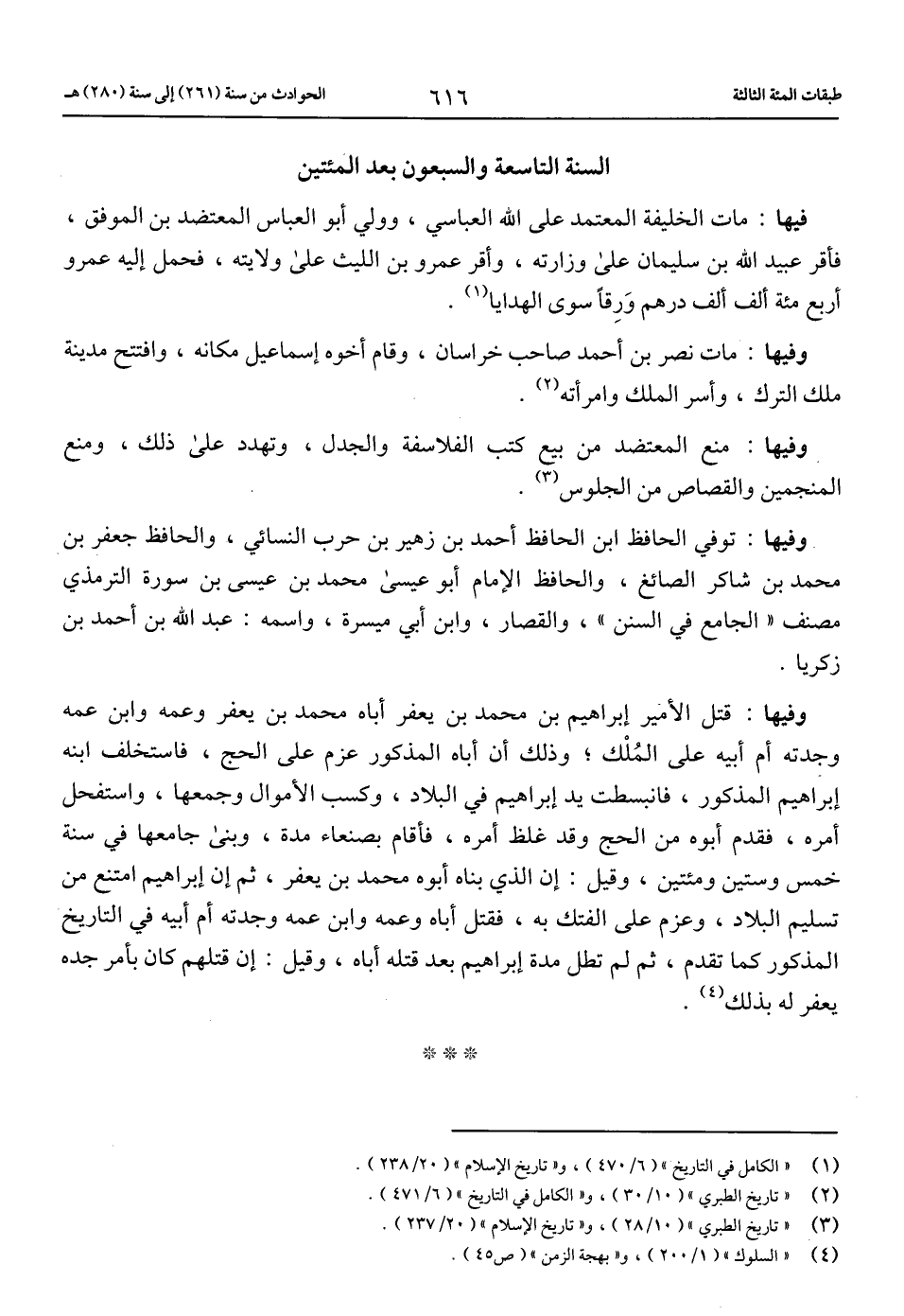 (1) «الكامل في التاريخ» (6/ 470)، و «تاريخ الإسلام» (20/ 238).