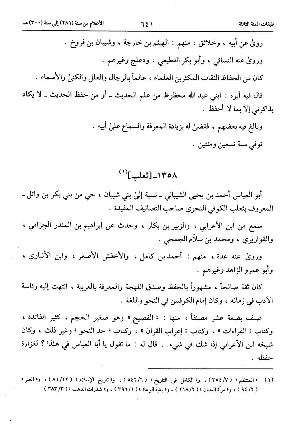 أبو العباس أحمد بن يحيى الشيباني-نسبة إلى بني شيبان، حي من بني بكر بن وائل- المعروف بثعلب الكوفي النحوي صاحب التصانيف المفيدة.