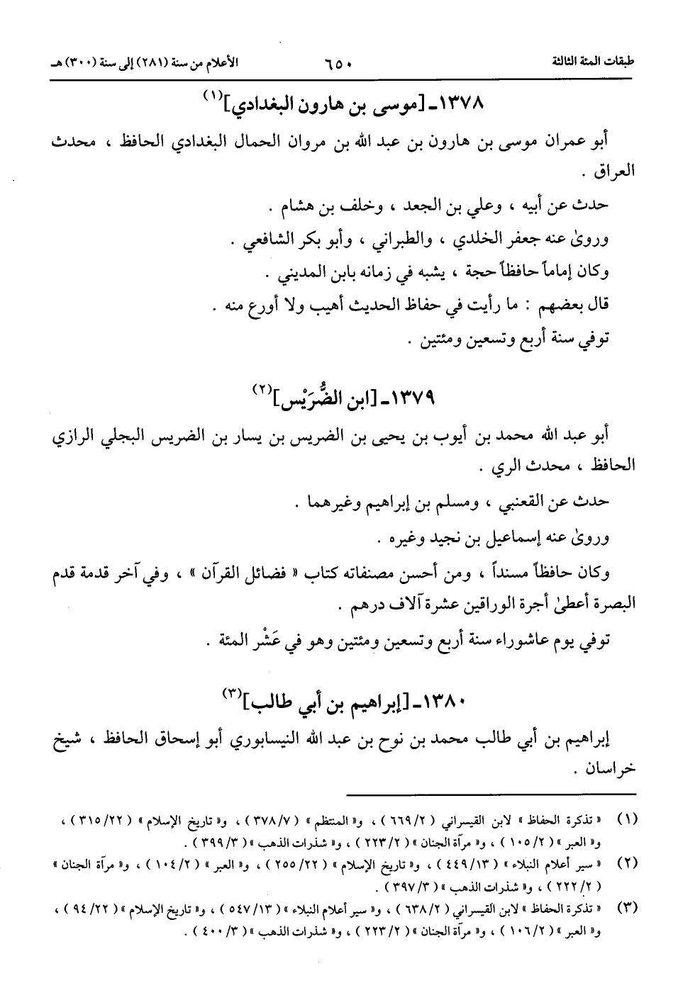أبو عمران موسى بن هارون بن عبد الله بن مروان الحمال البغدادي الحافظ، محدث العراق.