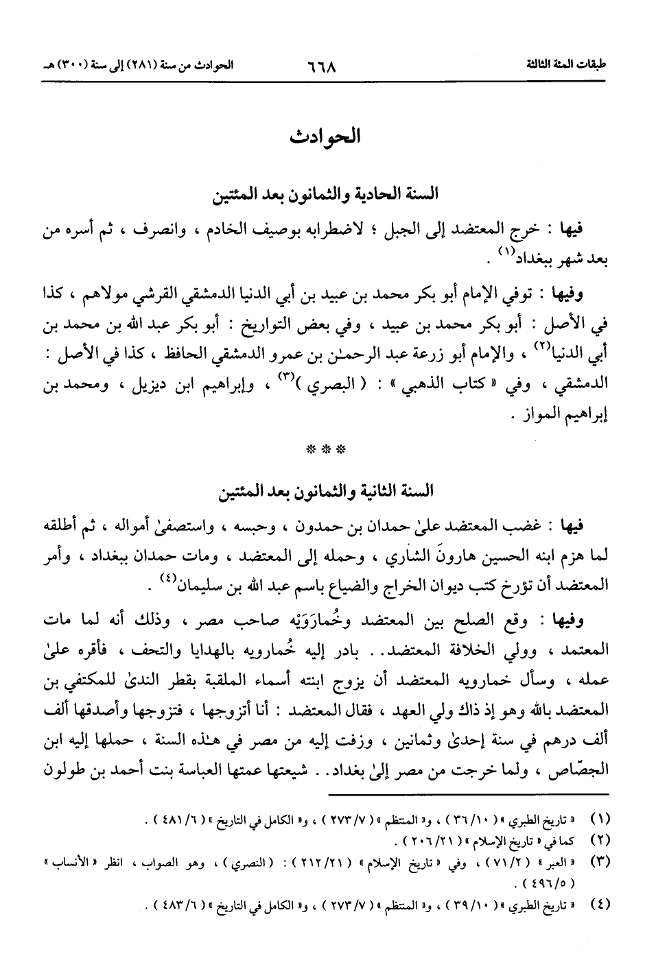 (4) «تاريخ الطبري» (10/ 39)، و «المنتظم» (7/ 273)، و «الكامل في التاريخ» (6/ 483).