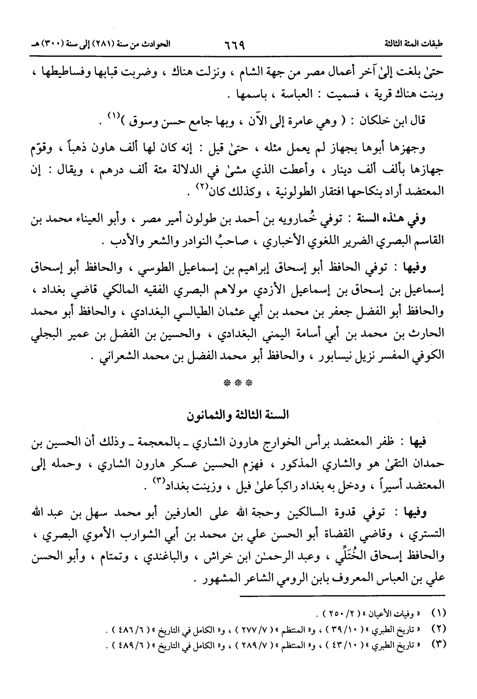 (3) «تاريخ الطبري» (10/ 43)، و «المنتظم» (7/ 289)، و «الكامل في التاريخ» (6/ 489).