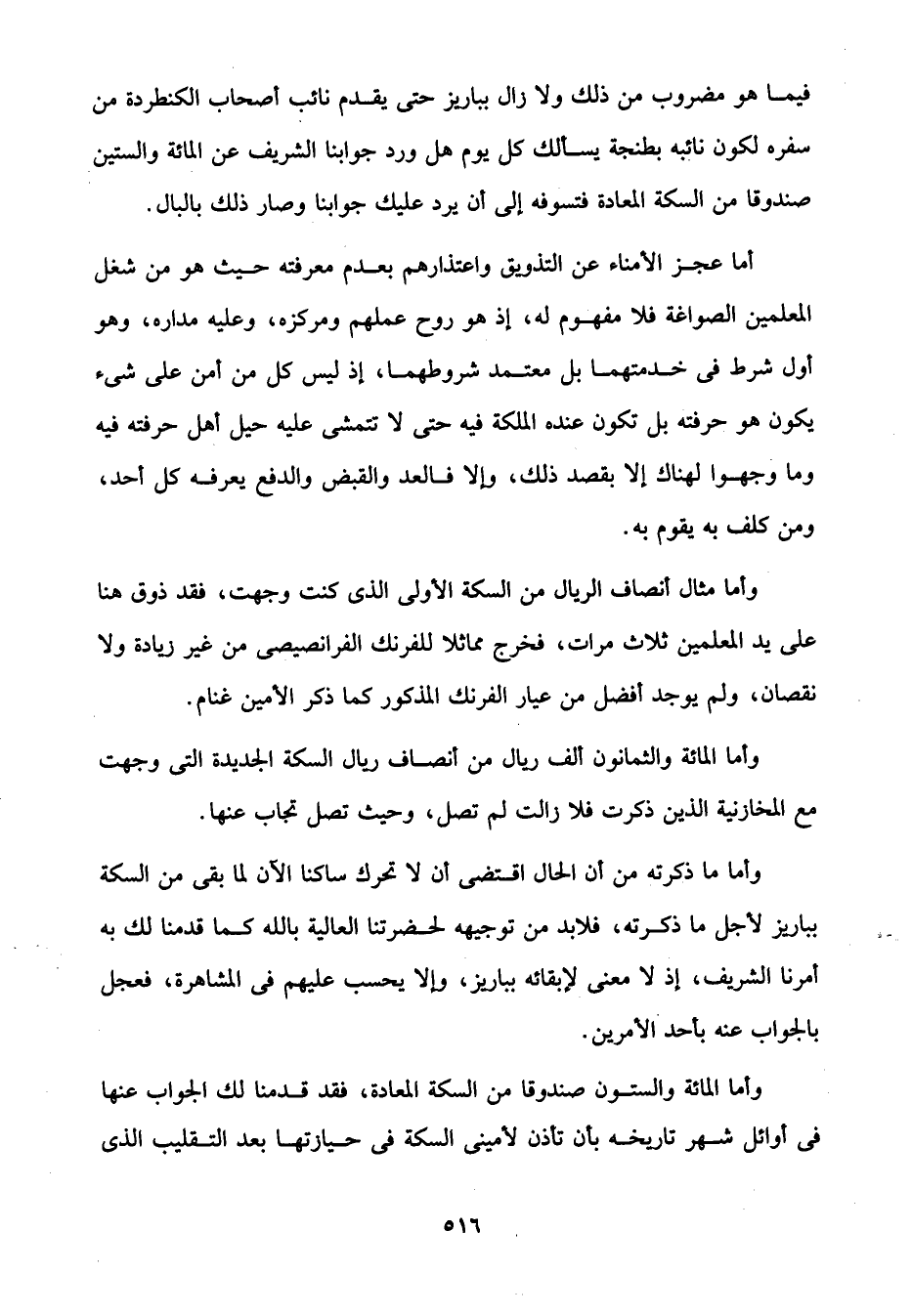 فيما هو مضروب من ذلك ولا زال بباريز حتى يقدم نائب أصحاب الكنطردة من سفره لكون نائبه بطنجة يسألك كل يوم هل ورد جوابنا الشريف عن المائة والستين صندوقا من السكة المعادة فتسوفه إلى أن يرد عليك جوابنا وصار ذلك بالبال.