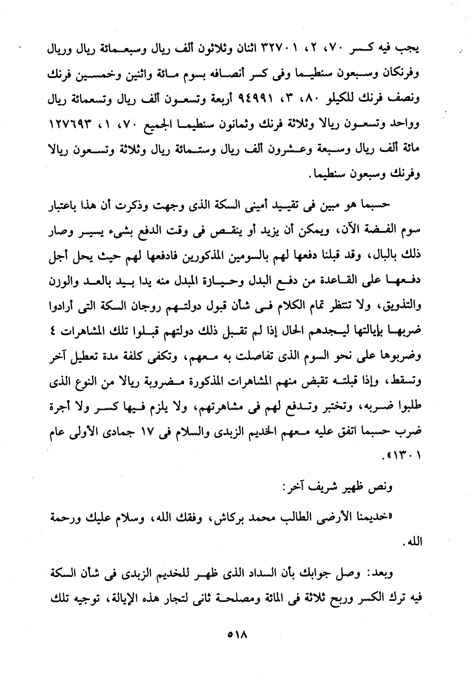 ووقع كلام كثير ظهر لك منه على ما بيدك من أوامرنا الشريفة، أنك لا تحصل على طائل، لأن الذى كان في بالك في هذه الوجهة هو التحفظ على عدم وقوع ريبة في ديننا والتحفظ على جانبنا العالى بالله، وعلى الرعية وجلب الخير لبيت المال، وما زاد على ذلك من أمر الحماية كله ربح، وأن الرثيل اليهودى النجليزى قدم لهناك وصار يفد عليك ما تحاوله حتى صاروا يتكلمون في وزير الصبنيول بما بينته وكثر الكلام في الجوازيط وغيرها.