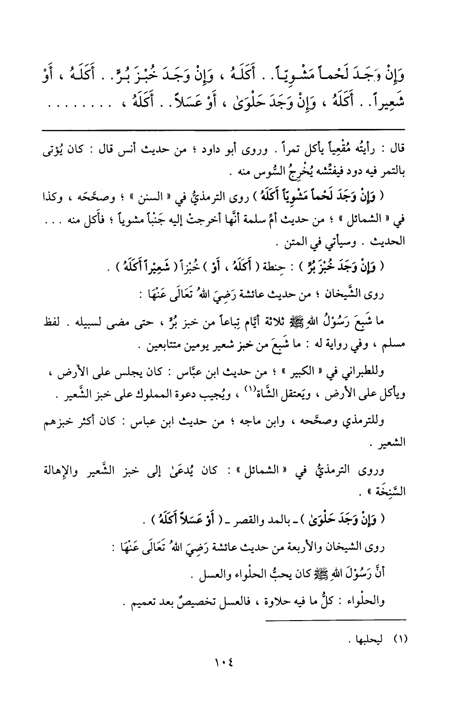 وإن وجد لحما مشويّا.. أكله، وإن وجد خبز برّ.. أكله، أو شعيرا.. أكله، وإن وجد حلوى، أو عسلا.. أكله، ...