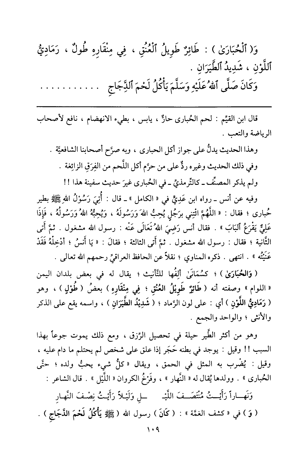 وهذا الحديث يدلّ على جواز أكل الحبارى، وبه صرّح أصحابنا الشافعيّة.