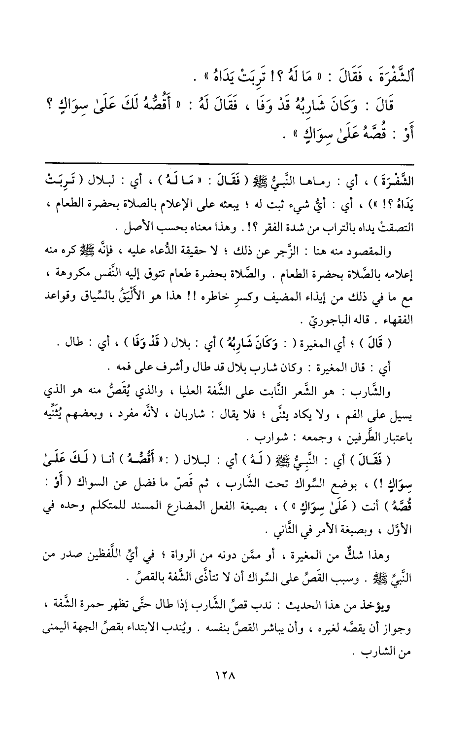 وهذا شكّ من المغيرة، أو ممّن دونه من الرواة؛ في أيّ اللّفظين صدر من النّبيّ صلّى الله عليه وسلم. وسبب القصّ على السّواك ألاتتأذّى الشّفة بالقصّ.