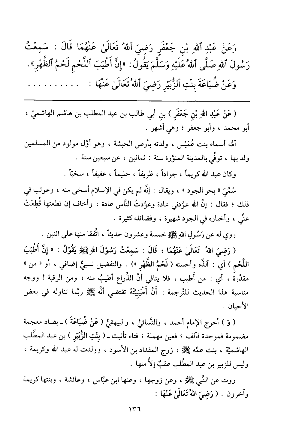 وعن ضباعة بنت الزّبير رضي الله تعالى عنها: ...