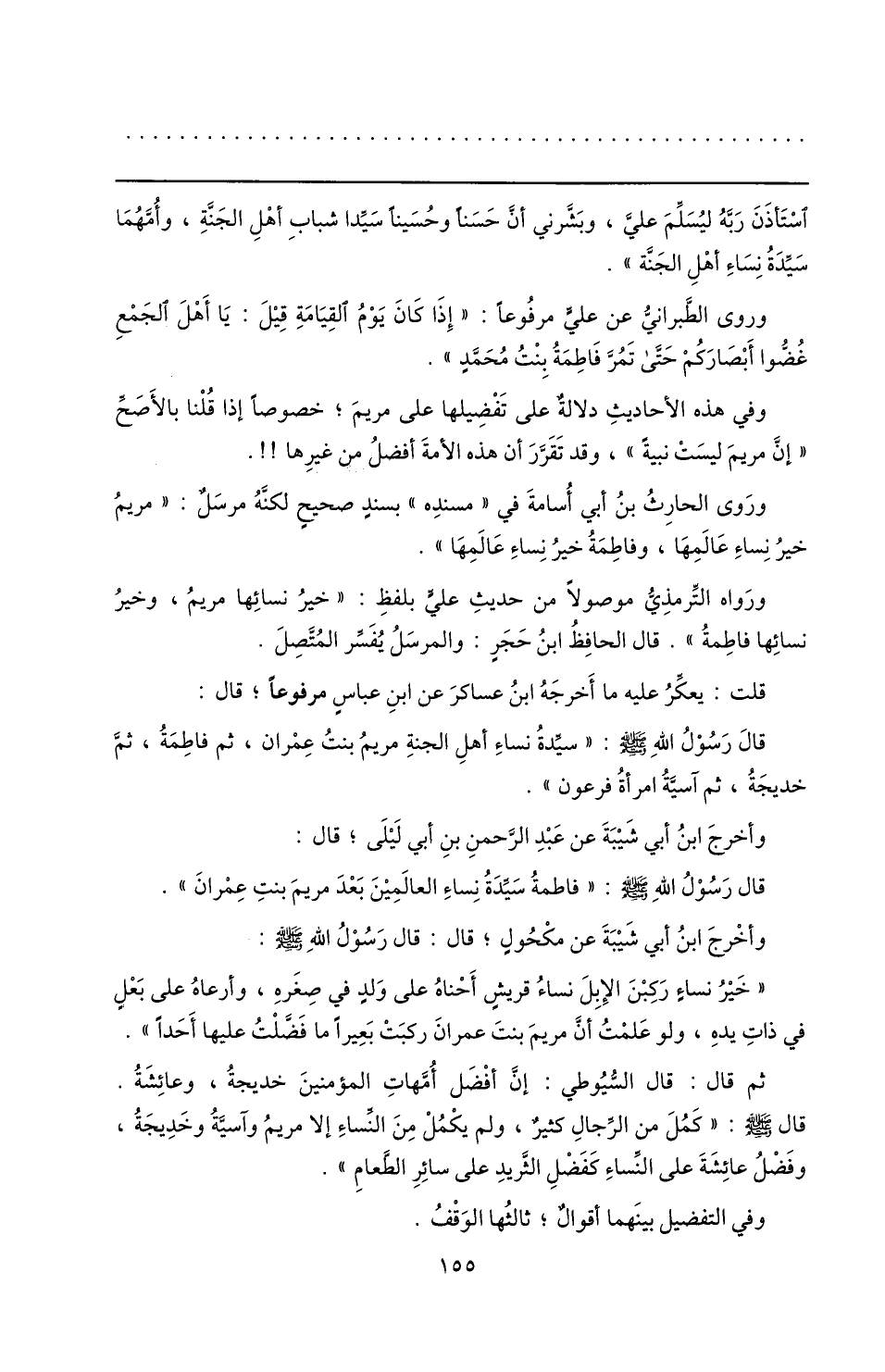وفي هذه الأحاديث دلالة على تفضيلها على مريم؛ خصوصا إذا قلنا بالأصحّ «إنّ مريم ليست نبية» ، وقد تقرّر أن هذه الأمة أفضل من غيرها!!.