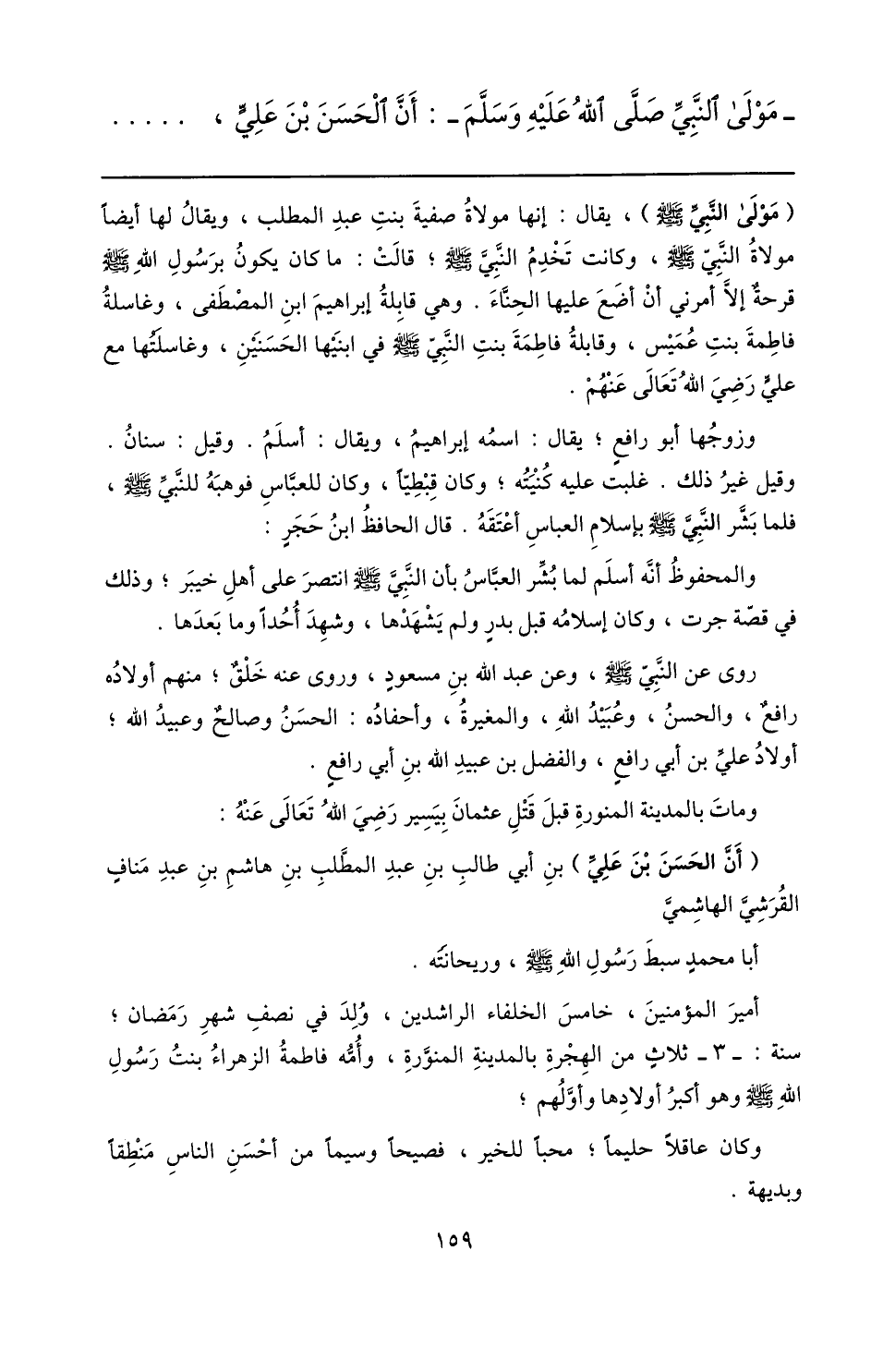 - مولى النّبيّ صلّى الله عليه وسلّم-: أنّ الحسن بن عليّ، ...