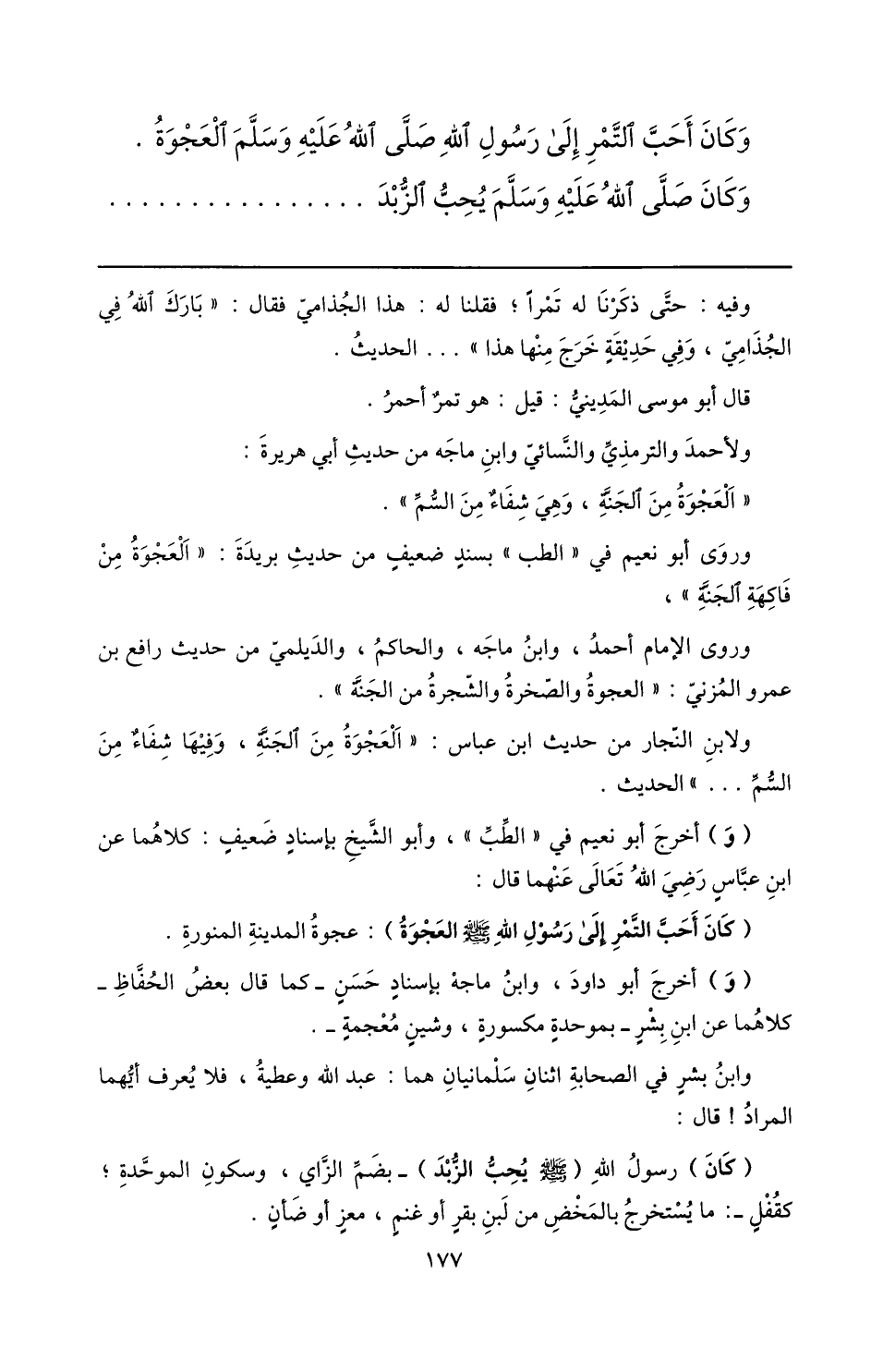 وكان أحبّ التّمر إلى رسول الله صلّى الله عليه وسلّم العجوة.