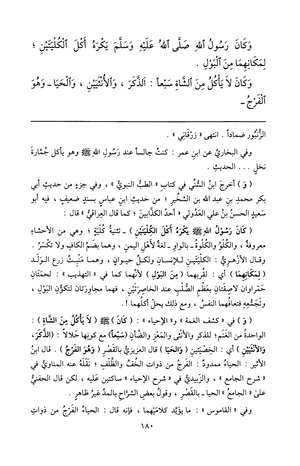 وكان رسول الله صلّى الله عليه وسلّم يكره أكل الكليتين؛ لمكانهما من البول.