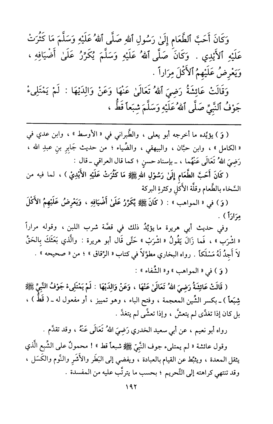 وقالت عائشة رضي الله تعالى عنها وعن والديها: لم يمتلىء جوف النّبيّ صلّى الله عليه وسلّم شبعا قطّ،