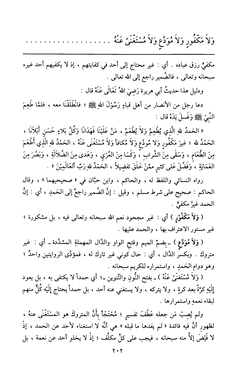 رواه النسائي واللفظ له، والحاكم، وابن حبّان في «صحيحيهما» ، وقال الحاكم: صحيح على شرط مسلم، وقيل: إنّ الضّمير راجع إلى الحمد، أي: إنّ الحمد غير مكفيّ.