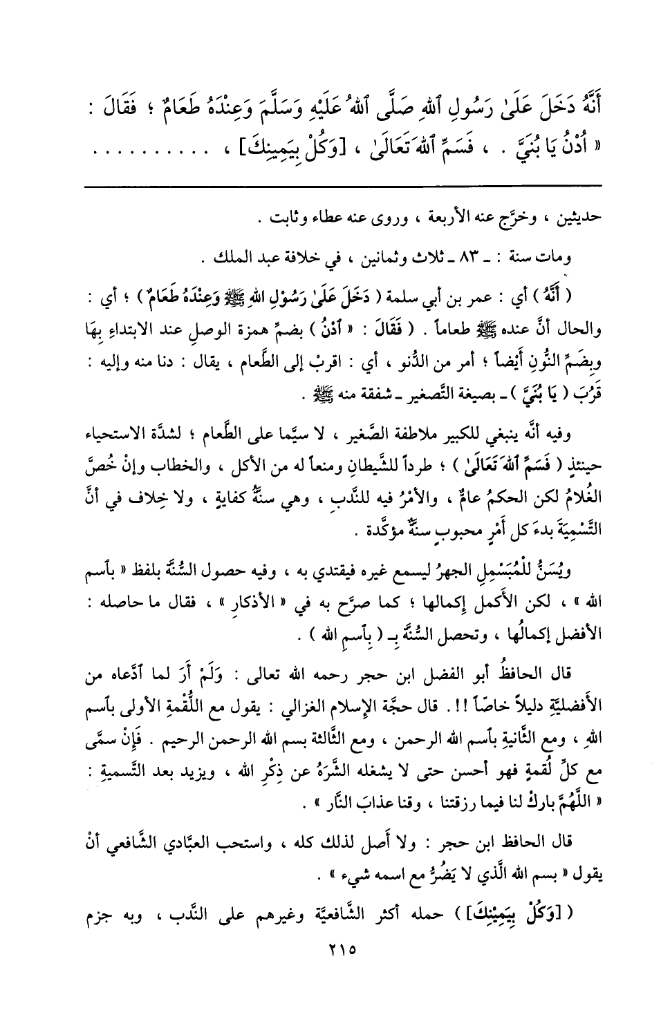 «ادن يا بنيّ.، فسمّ الله تعالى، [وكل بيمينك] ، ...