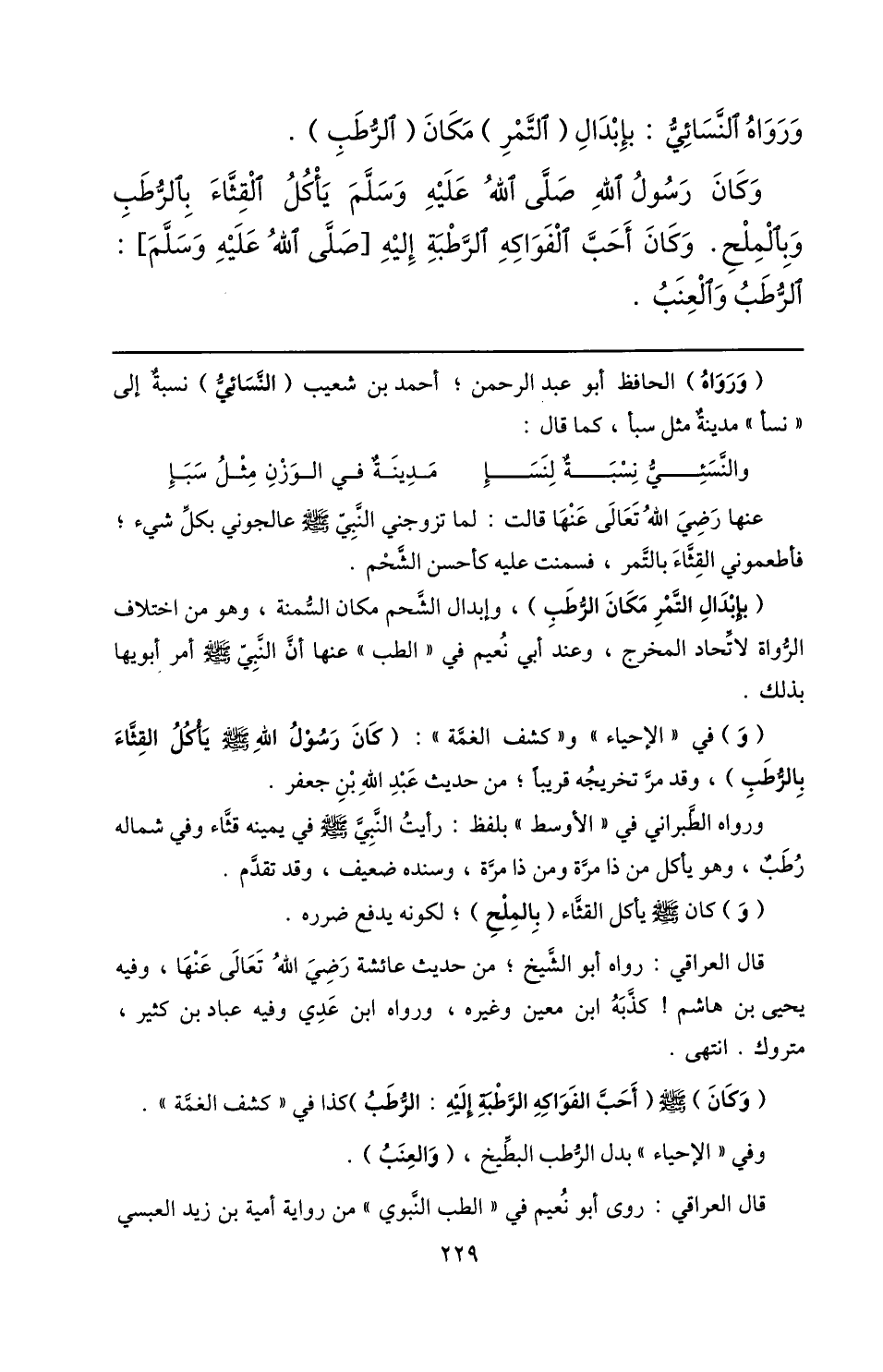 (و) في «الإحياء» و «كشف الغمّة» : (كان رسول الله صلّى الله عليه وسلم يأكل القثّاء بالرّطب) ، وقد مرّ تخريجه قريبا؛ من حديث عبد الله بن جعفر.