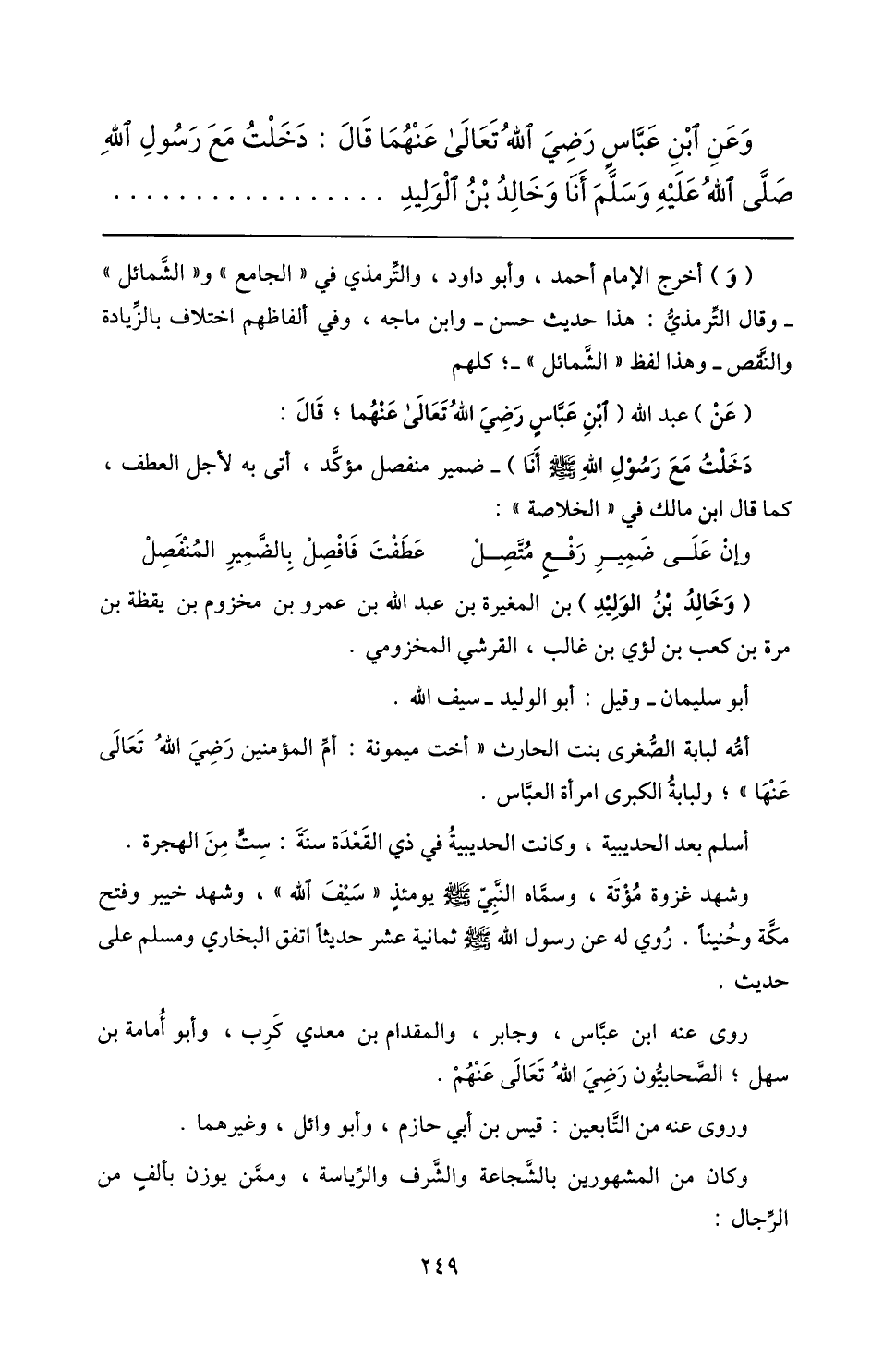 وعن ابن عبّاس رضي الله تعالى عنهما قال: دخلت مع رسول الله صلّى الله عليه وسلّم أنا وخالد بن الوليد ...