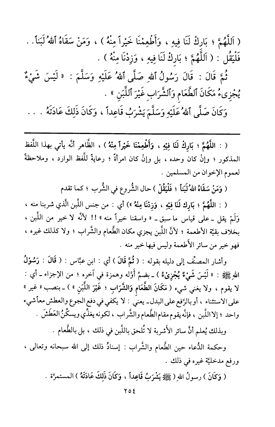 (اللهمّ؛ بارك لنا فيه، وأطعمنا خيرا منه) ، ومن سقاه الله لبنا..