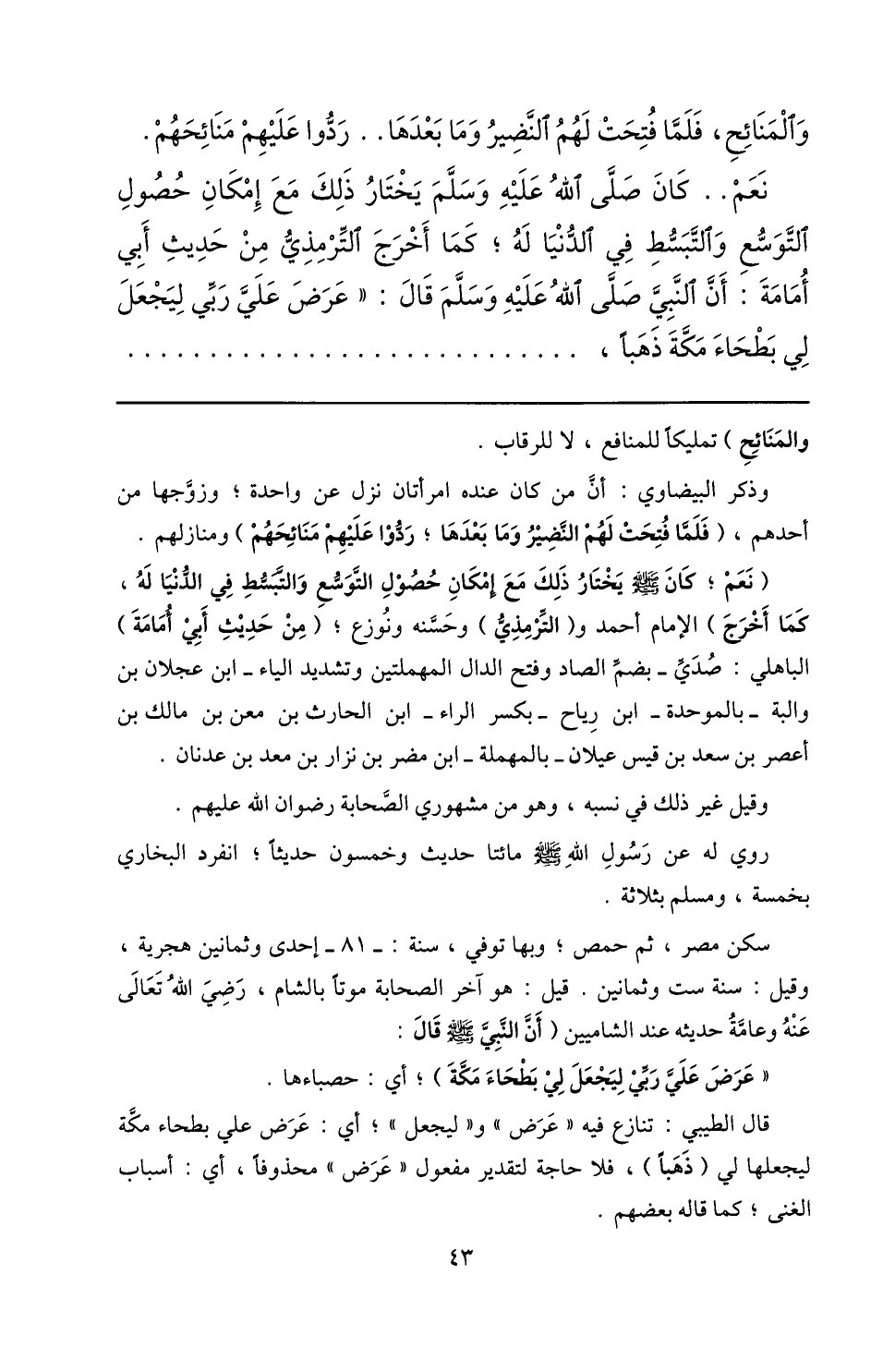 وذكر البيضاوي: أنّ من كان عنده امرأتان نزل عن واحدة؛ وزوّجها من أحدهم، (فلمّا فتحت لهم النّضير وما بعدها؛ ردّوا عليهم منائحهم) ومنازلهم.