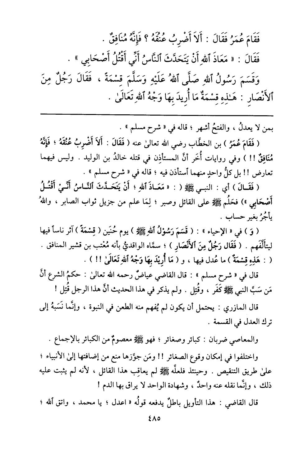 واختلفوا في إمكان وقوع الصغائر!! ومن جوّزها منع من إضافتها إلى الأنبياء؛ على طريق التنقيص. وحينئذ فلعلّه صلّى الله عليه وسلم لم يعاقب هذا القائل، لأنه لم يثبت عليه ذلك، وإنّما نقله عنه واحد، وشهادة الواحد لا يراق بها الدم!