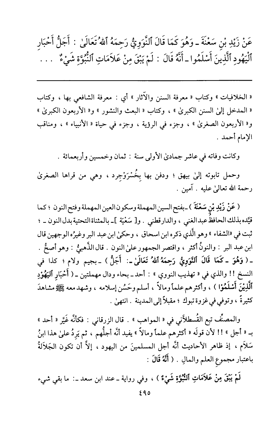 - (وهو- كما قال النّوويّ رحمه الله تعالى-: أجلّ) - بجيم ولام؛ كذا في النسخ!! والذي في «تهذيب النووي» : أحد- بحاء ودال مهملتين- (أحبار اليهود الّذين أسلموا) ، وأكثرهم علما ومالا، أسلم وحسن إسلامه، وشهد معه صلّى الله عليه وسلم مشاهد كثيرة، وتوفي في غزوة تبوك؛ مقبلا إلى المدينة. انتهى.