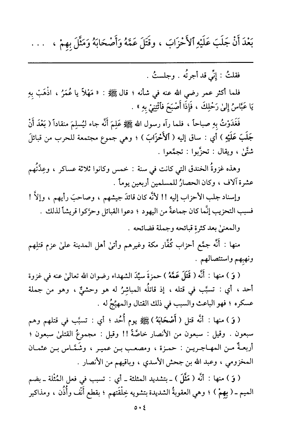 بعد أن جلب عليه الأحزاب، وقتل عمّه وأصحابه ومثّل بهم، ...