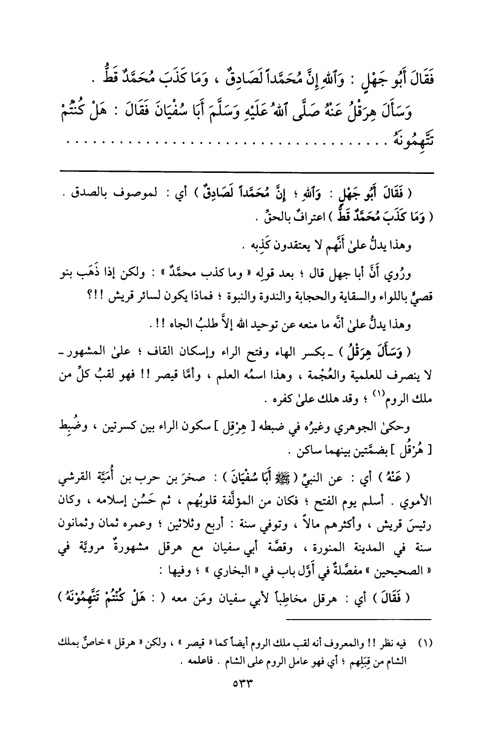 (1) فيه نظر!! والمعروف أنه لقب ملك الروم أيضا كما «قيصر» ، ولكن «هرقل» خاصّ بملك الشام من قبلهم؛ أي فهو عامل الروم على الشام. فاعلمه.