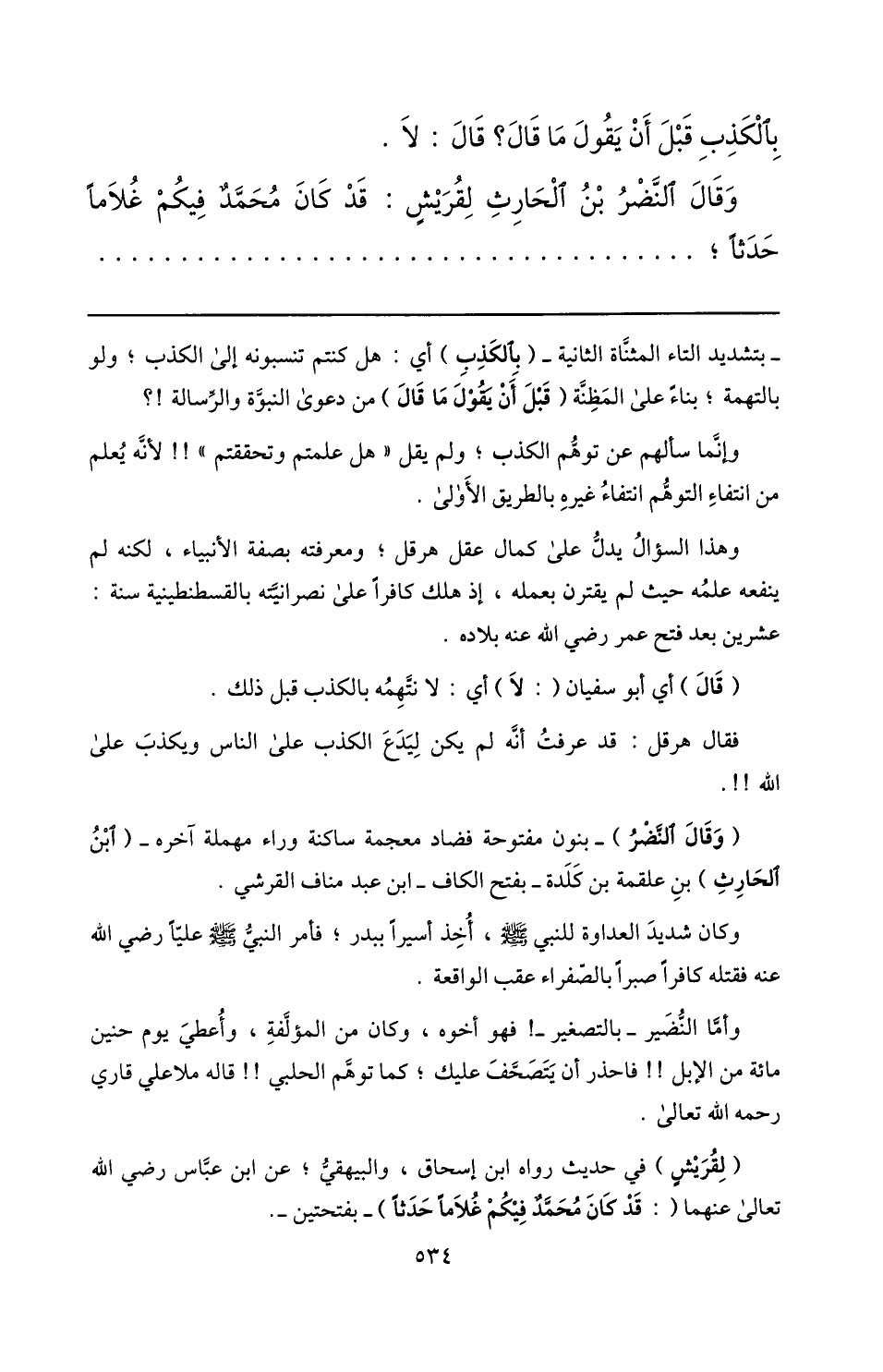 وقال النّضر بن الحارث لقريش: قد كان محمّد فيكم غلاما حدثا؛ ...