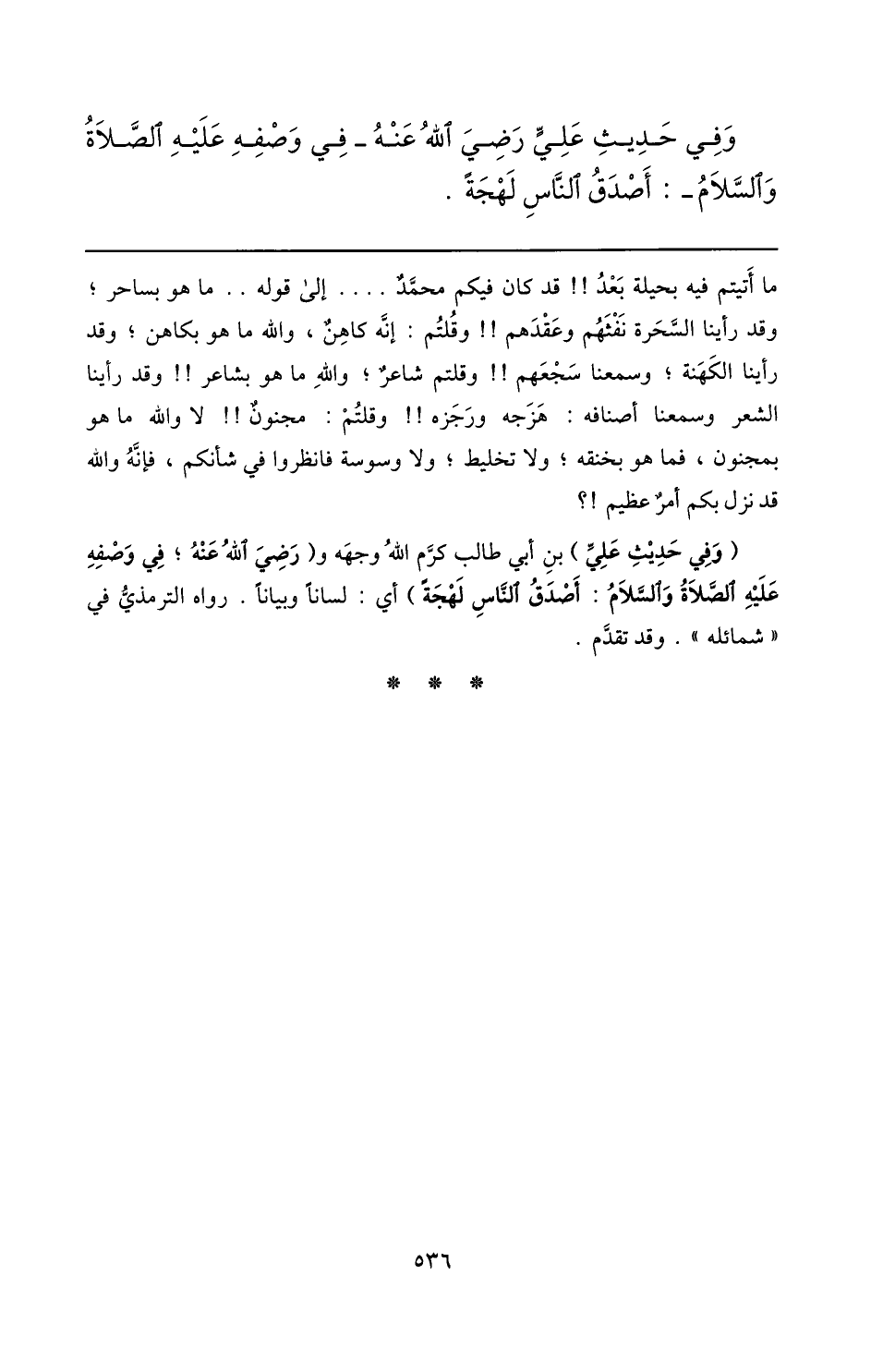 وفي حديث عليّ رضي الله عنه- في وصفه عليه الصّلاة والسّلام-: أصدق النّاس لهجة.