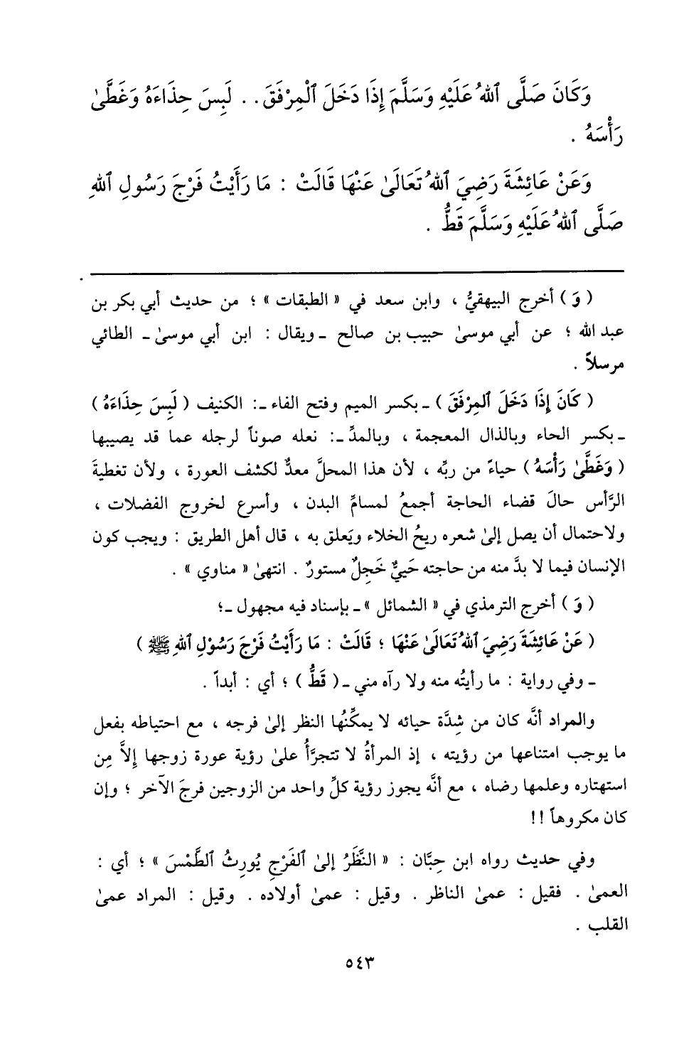 (عن عائشة رضي الله تعالى عنها؛ قالت: ما رأيت فرج رسول الله صلّى الله عليه وسلم)
