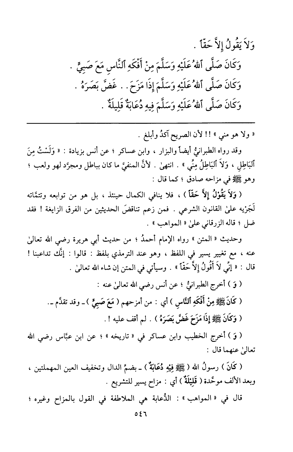 وقد رواه الطبرانيّ أيضا والبزار، وابن عساكر؛ عن أنس بزيادة: «ولست من الباطل، ولا الباطل منّي» . انتهى. لأنّ المنفيّ ما كان بباطل ومجرّد لهو ولعب؛ وهو صلّى الله عليه وسلم في مزاحه صادق؛ كما قال: