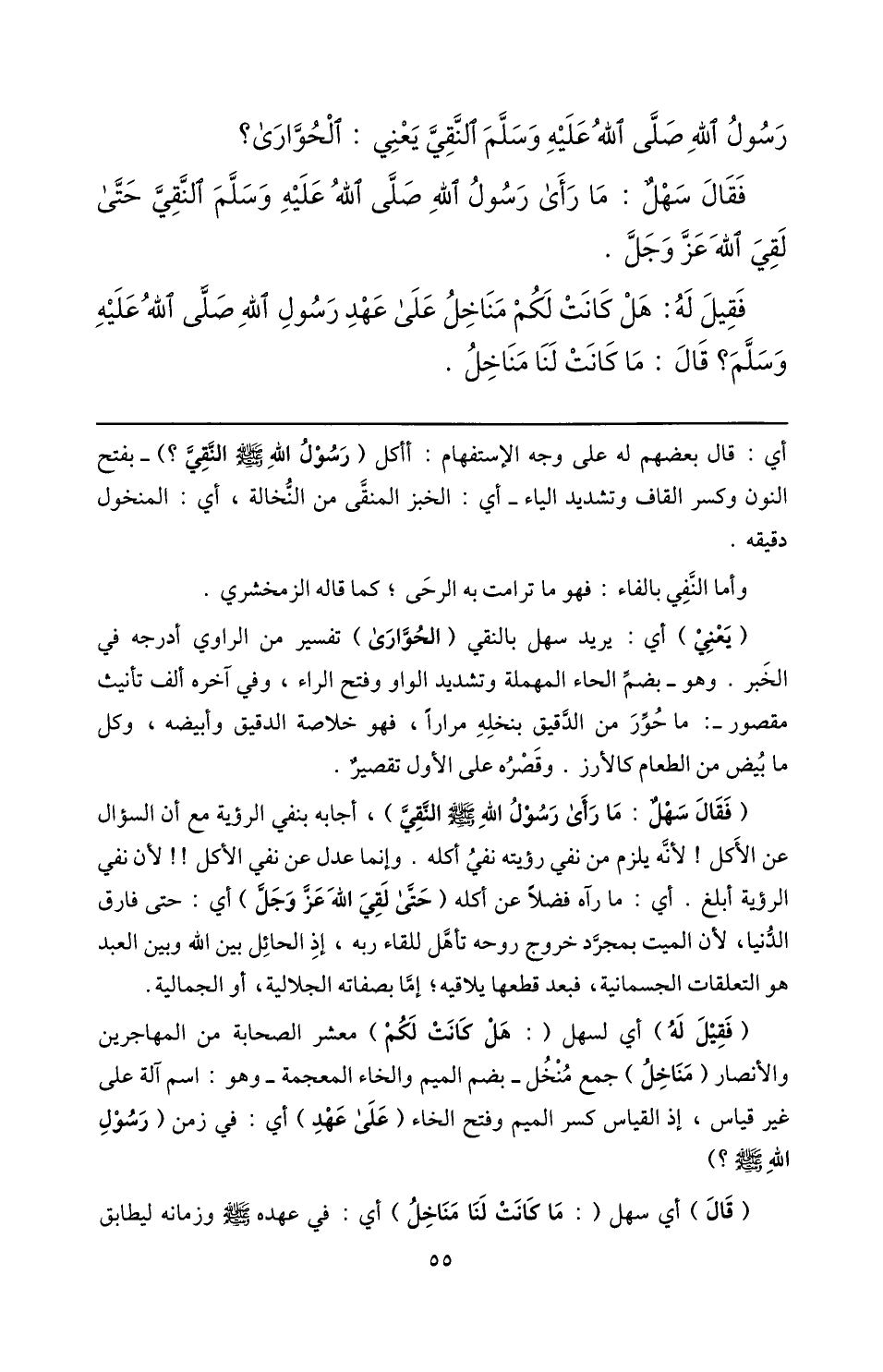 فقال سهل: ما رأى رسول الله صلّى الله عليه وسلّم النّقيّ حتّى لقي الله عزّ وجلّ.