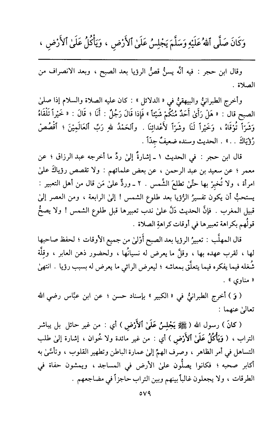 وقال ابن حجر: فيه أنّه يسنّ قصّ الرؤيا بعد الصبح، وبعد الانصراف من الصلاة.