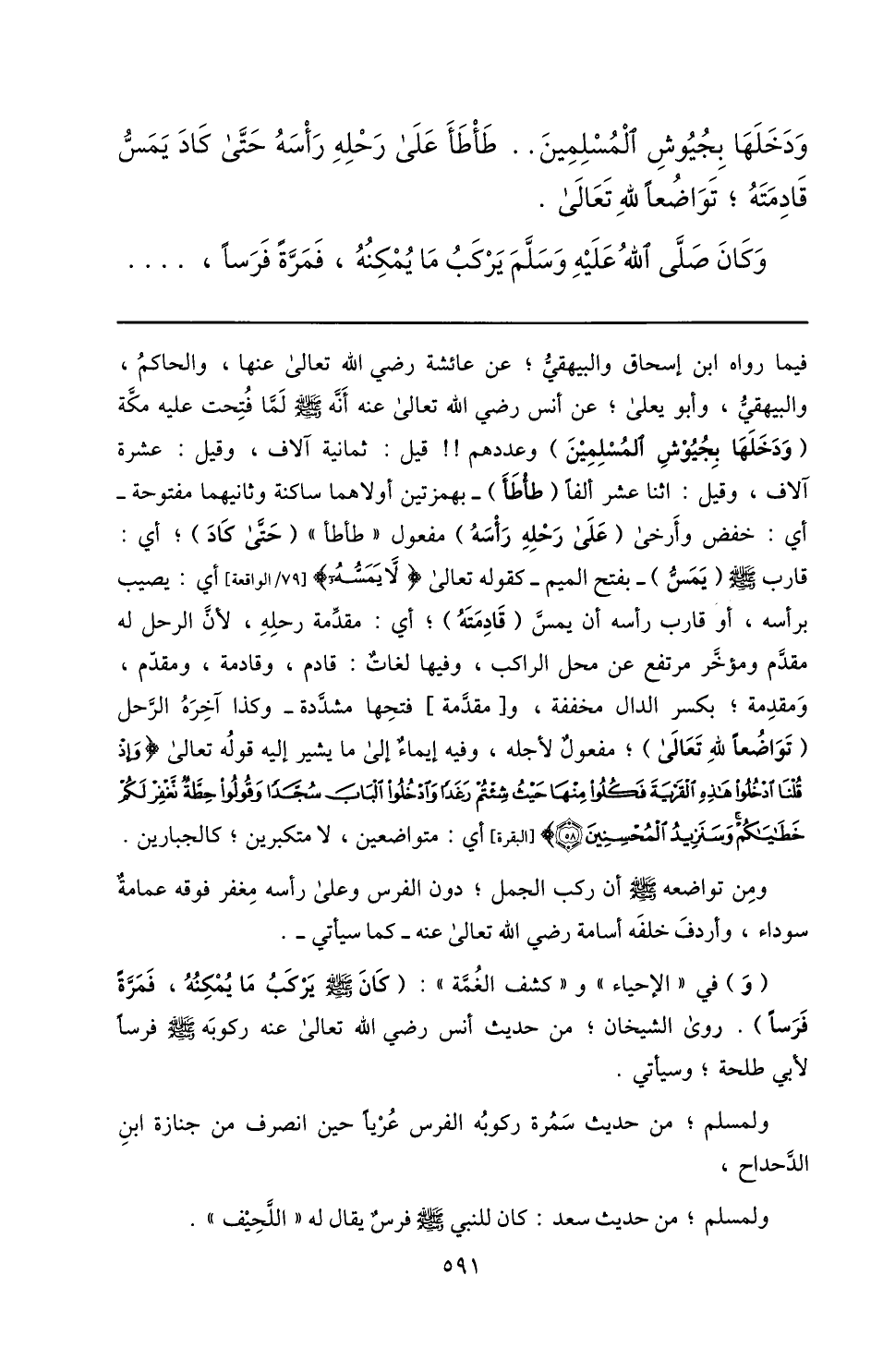 ودخلها بجيوش المسلمين.. طأطأ على رحله رأسه حتّى كاد يمسّ قادمته؛ تواضعا لله تعالى.
