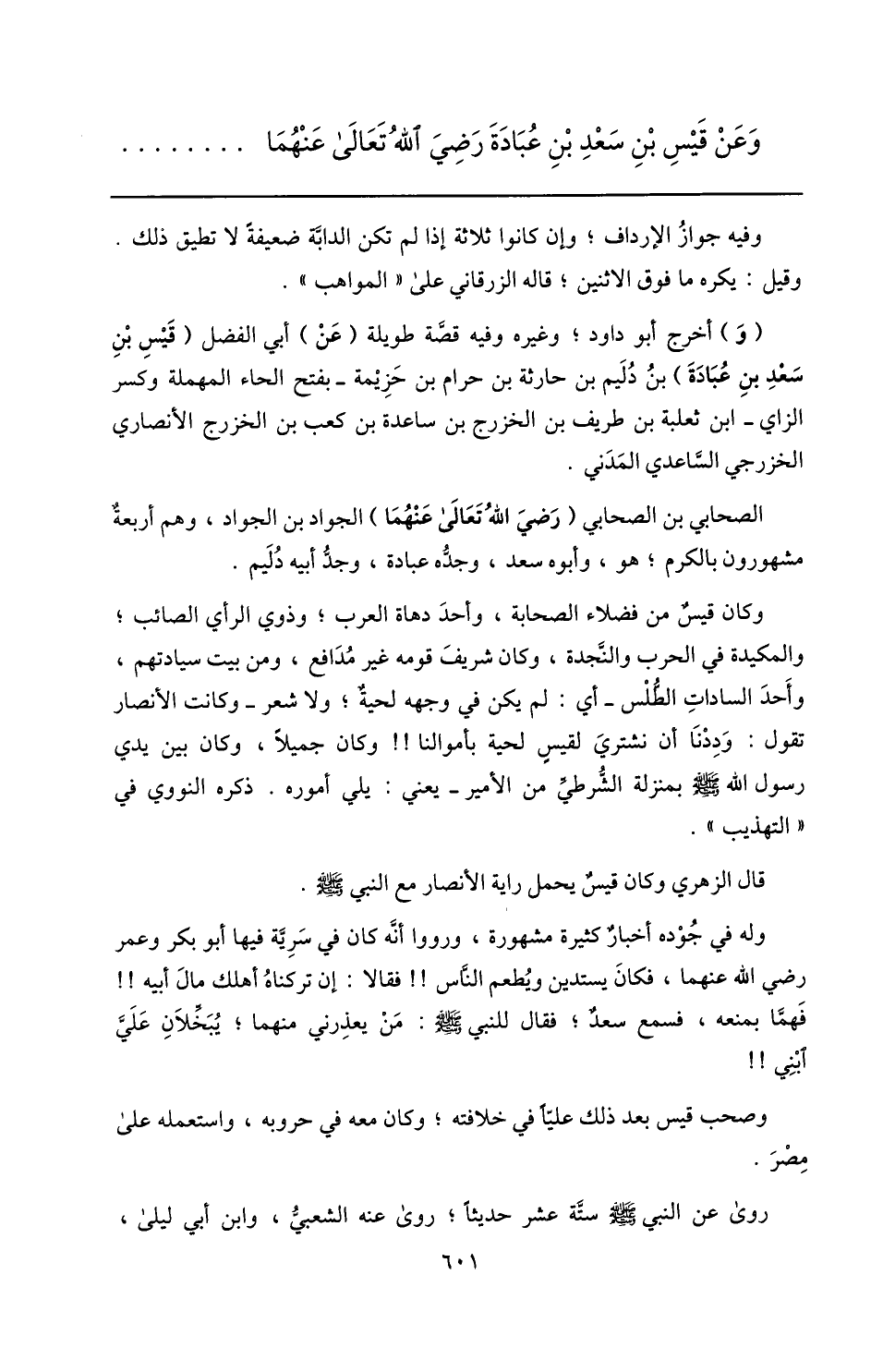 وعن قيس بن سعد بن عبادة رضي الله تعالى عنهما ...