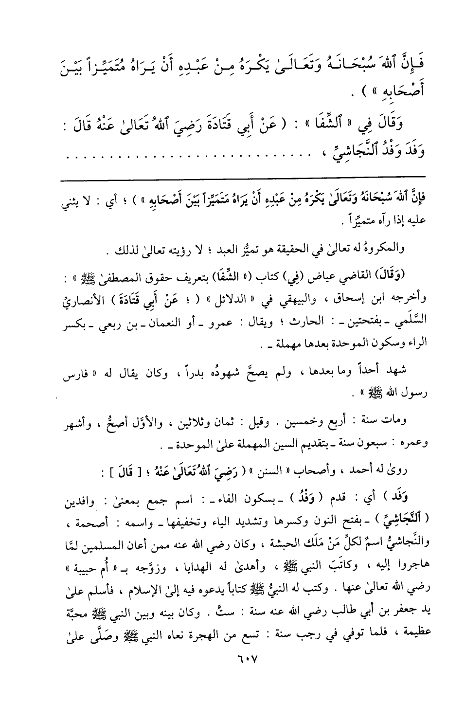 (وقال) القاضي عياض (في) كتاب ( «الشّفا) بتعريف حقوق المصطفى صلّى الله عليه وسلم» :
