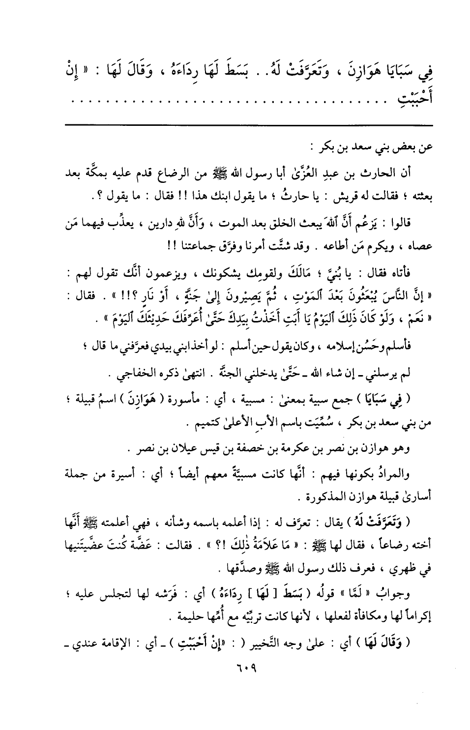 عن بعض بني سعد بن بكر: