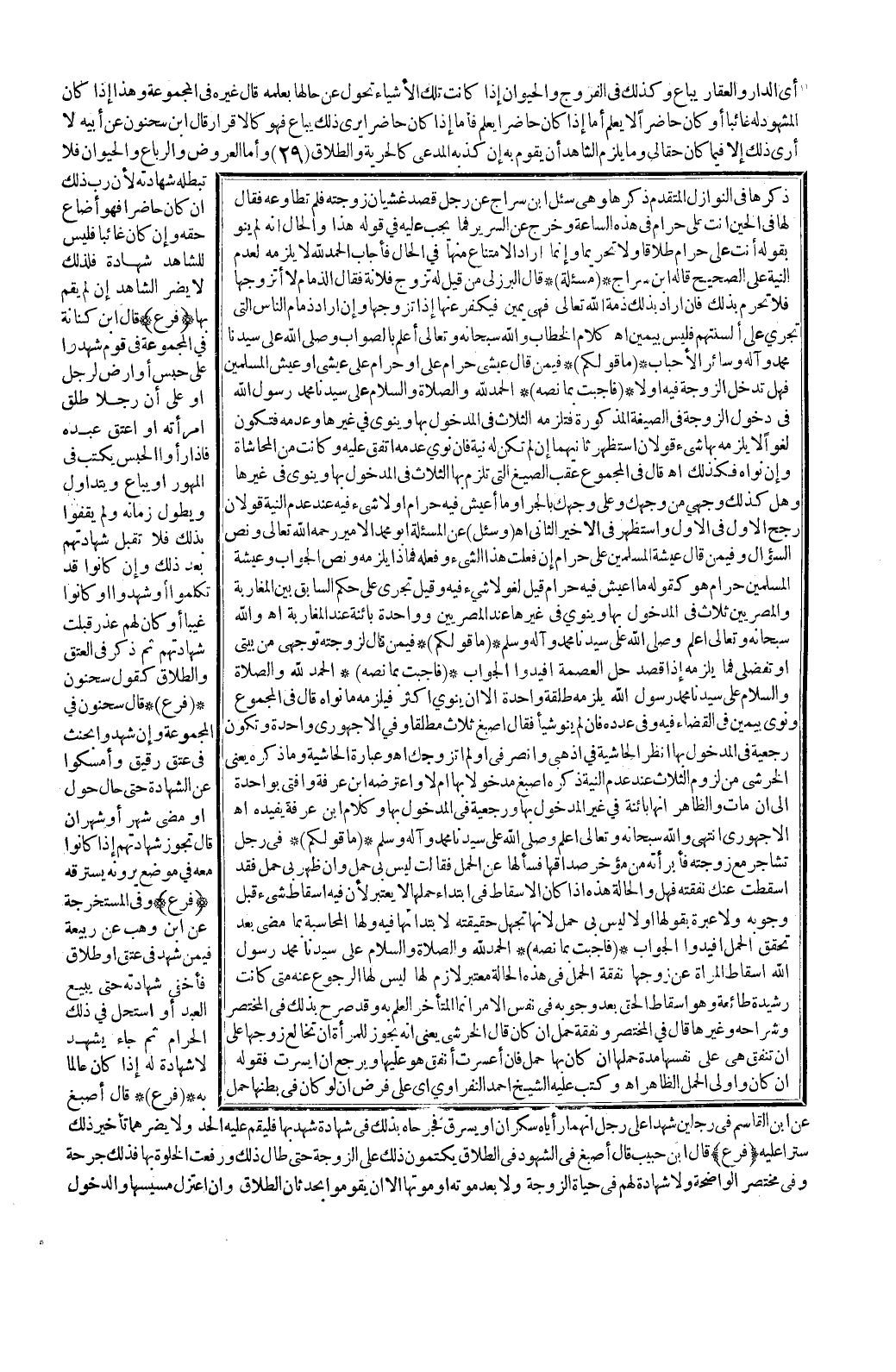 فَأَجَبْت بِمَا نَصُّهُ: الْحَمْدُ لِلَّهِ، وَالصَّلَاةُ وَالسَّلَامُ عَلَى سَيِّدِنَا مُحَمَّدٍ رَسُولِ اللَّهِ نَعَمْ يَقَعُ الطَّلَاقُ الثَّلَاثُ لِحُصُولِ الْمُعَلَّقِ عَلَيْهِ، وَهُوَ رَوَاحُهَا لِبَيْتِ أَبِيهَا، وَيَلْزَمُ مِنْ حُصُولِهِ حُصُولُ الْمُعَلَّقِ سَوَاءٌ كَانَ أَمْرًا وَاحِدًا أَوْ أَكْثَرَ، وَسَوَاءٌ عُلِّقَ الْأَكْثَرُ فِي زَمَنٍ أَوْ زَمَنَيْنِ كَمَا فِي الْخَرَشِيِّ فِي مَبْحَثِ الظِّهَارِ قَالَ: فِي شَرْحِ قَوْلِ الْمُخْتَصَرِ لَا إنْ تَقَدَّمَ أَوْ صَاحَبَ كَإِنْ تَزَوَّجْتُك فَأَنْتِ طَالِقٌ ثَلَاثًا، وَأَنْتِ عَلَيَّ كَظَهْرِ أُمِّي مَا نَصُّهُ، وَكَذَلِكَ لَا يَسْقُطُ الظِّهَارُ إذَا صَاحَبَهُ الطَّلَاقُ كَقَوْلِهِ لِامْرَأَةٍ أَجْنَبِيَّةٍ إنْ تَزَوَّجْتُك فَأَنْتِ طَالِقٌ ثَلَاثًا، وَأَنْتِ عَلَيَّ كَظَهْرِ أُمِّي فَإِنَّهُ إذَا تَزَوَّجَهَا يَلْزَمُهُ الظِّهَارُ لِمَا عَلِمْت أَنَّ الْمُعَلَّقَ، وَالْمُعَلَّقَ عَلَيْهِ يَقَعَانِ فِي آنٍ وَاحِدٍ عِنْدَ وُجُودِ سَبَبِهِمَا لِانْتِفَاءِ التَّرْتِيبِ فِيهِمَا، وَسَوَاءٌ وَقَعَ التَّعْلِيقُ الْمَذْكُورُ فِي مَجْلِسٍ أَوْ مَجْلِسَيْنِ فَإِنَّهُمَا يَقَعَانِ بِالْعَقْدِ فَتَطْلُقُ بِمُجَرَّدِ الْعَقْدِ ثَلَاثًا، فَإِذَا تَزَوَّجَهَا بَعْدَ زَوْجٍ فَإِنَّهُ لَا يَقْرَبُهَا حَتَّى يُكَفِّرَ كَفَّارَةَ الظِّهَارِ اهـ.
